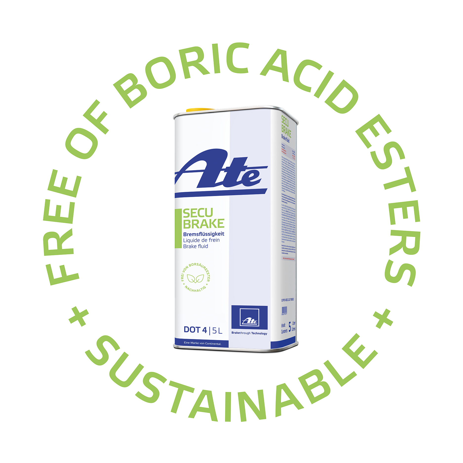 ATE SecuBrake es el primer líquido de frenos sostenible que cumple con las demandas de los clientes para una producción respetuosa con el medio ambiente. Certificado y con una huella ecológica significativamente mejorada, señala el camino hacia un futuro sostenible. ATE SecuBrake atrae a nuevos grupos objetivos conscientes del medio ambiente y demuestra su compromiso con la movilidad sostenible.